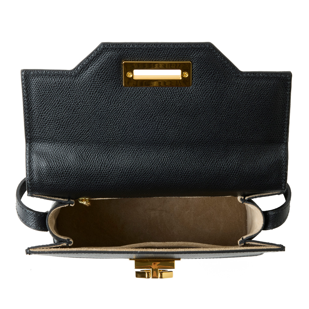 Giulia 270 è una borsa in stile messenger in vitello palmellato ed è foderata in pelle scamosciata. Giulia è costituita da un corpo a cartella con comparto interno unico e può essere chiusa grazie a una chiusura a leva.